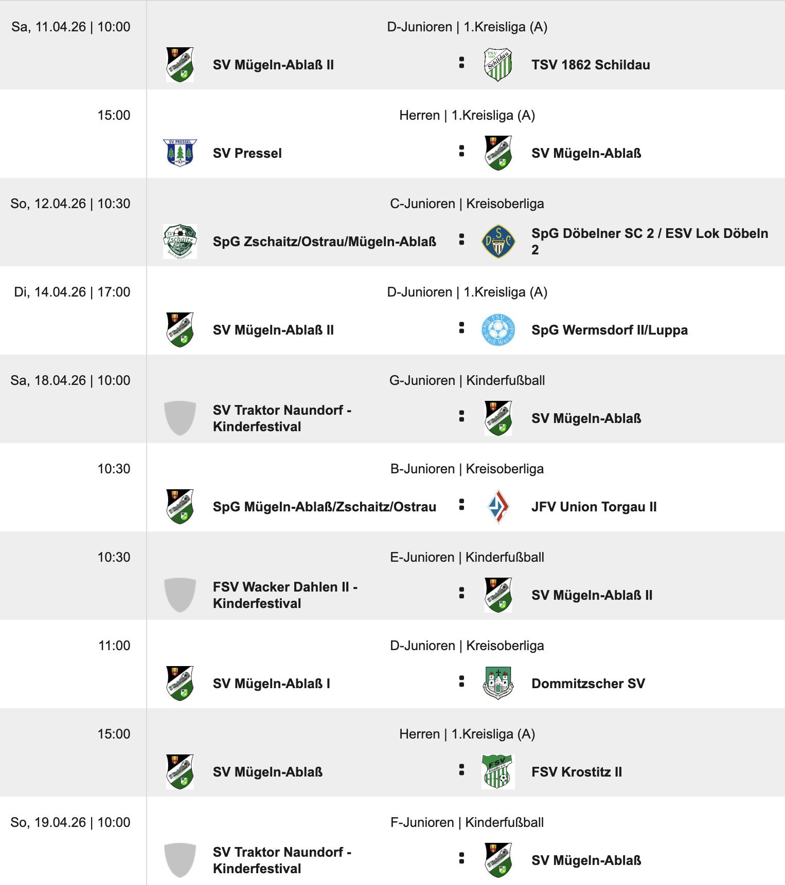 Sa, 11.04.2025 15:00 Uhr Sportplatz Mügeln